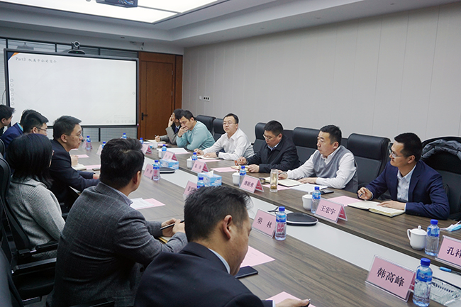2月17日,菏澤魯西新區(qū)籌建組副組長苑濤攜菏澤財金集團、菏澤國投集團一行來訪煙臺財金集團座談交流。集團總經(jīng)理李輝,紀檢委員、監(jiān)察專員姜雪寧及相關部室負責人參加座談會議。