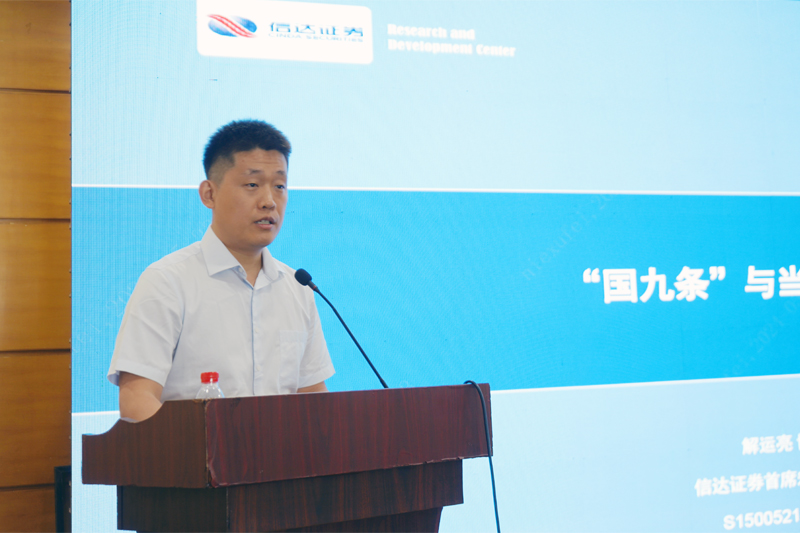 會議由煙臺財金集團黨委委員、副總經(jīng)理修兆強主持。會上,中國信達山東分公司業(yè)務(wù)四處處長楊健、信達證券宏觀首席分析師解運亮先后分別以《不良資產(chǎn)視角下的上市公司并購重組》和《“國九條”與當前經(jīng)濟形勢》為題進行主題分享。