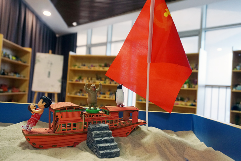 隨后,在沙盤師的引領(lǐng)下,大家共同感受了一堂生動的紅色教育主題沙盤體驗課。通過沙盤創(chuàng)作過程的分享,大家在沙盤游戲中回顧入黨初心,分享紅色故事,一起在沉浸式課堂中感受崢嶸歲月。