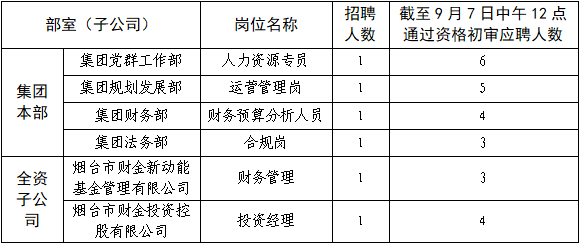 截至9月7日中午十二點(以報名郵箱簡歷收到時間為準(zhǔn)),崗位通過資格初審報名人數(shù)與崗位需求人數(shù)比例滿足最低3:1的比例要求,視為達到面試條件,第一批次面試崗位見下表: